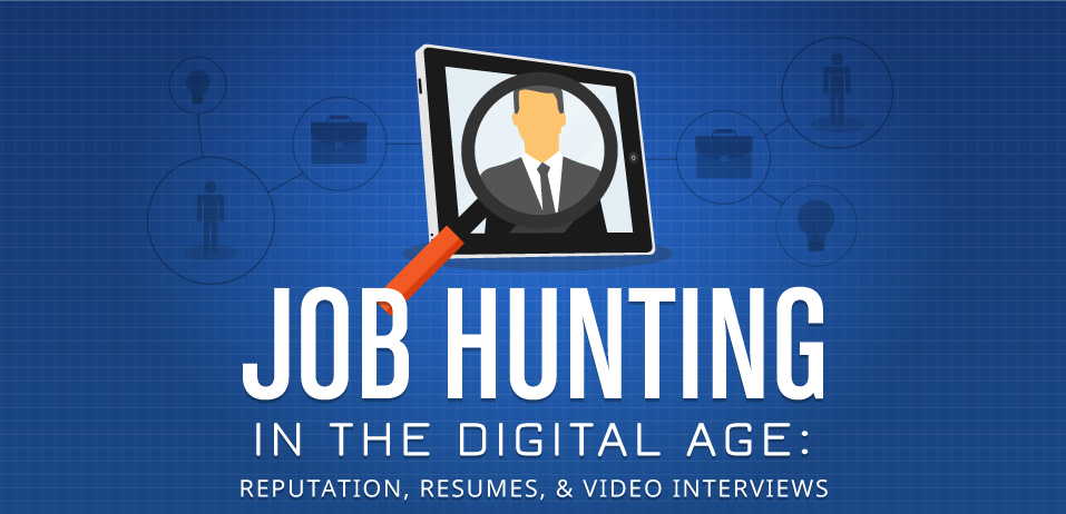 Job hunting in the digital age is not just about the paper resume. No one cares if your resume is on card stock with a jazzy objective because employers are going online. They’re looking at more than just the careful face you put forward. As the infograph below highlights, potential employers are tracking your digital reputation, resumes, and video interviews to determine if you are a good fit for their culture.