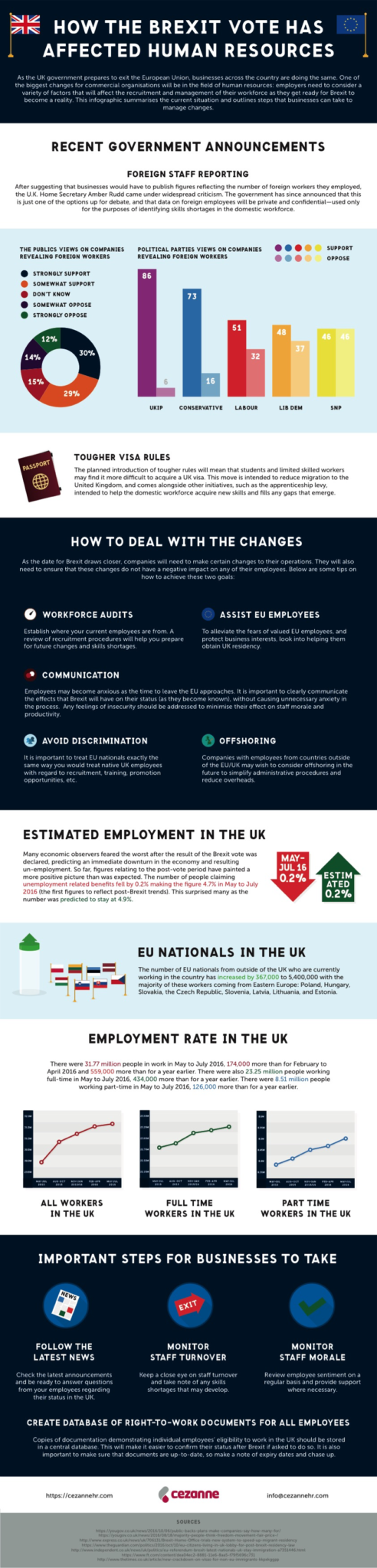 Whatever the outcome, the onus will be on HR professionals to make matters simple for affected employees and the business as a whole. Thankfully, management tools like Cezanne Human Resources software help streamline the process. See the infographic below for more on what changes to make in the run up to Brexit.